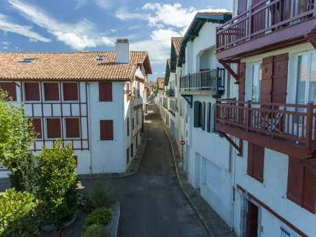 Rue Pocalette is at the heart of the town of Ciboure and starts from the wooden bridge built in the 14th century. One can see remarkable architectural remains, despite the destructions caused by successive invasions. There are houses that are typical of the urban architectural style of the Labourd area: their ground floors contain warehouses or shops while their upper floors have a corbelled construction around a structure of wooden panels. In this historical road, one can see a wall plate with a printing brace pattern, a porch with wide arch stones decorated by a frieze of pearls, or a wide eave supported by voluted wooden corbels.