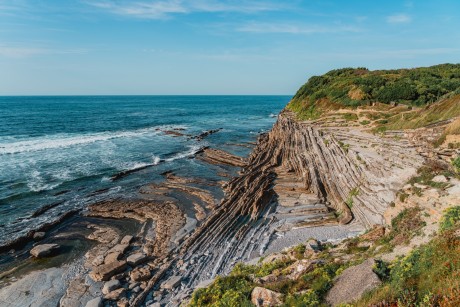 Located at the end of the Pyrenees mountain range, the nine kilometres of rocky coasts and beaches of the bay form a remarkable and fragile landscape. The coastline, born of the convergence then the collision of the Iberian and European plates, is marked by the presence of rocky outcrops of great recumbent folds called chalky clayey flyschs, i.e. sequences of hard chalky layers and soft clayey layers. The fragility of this system plays a part in the receding of the coastline.